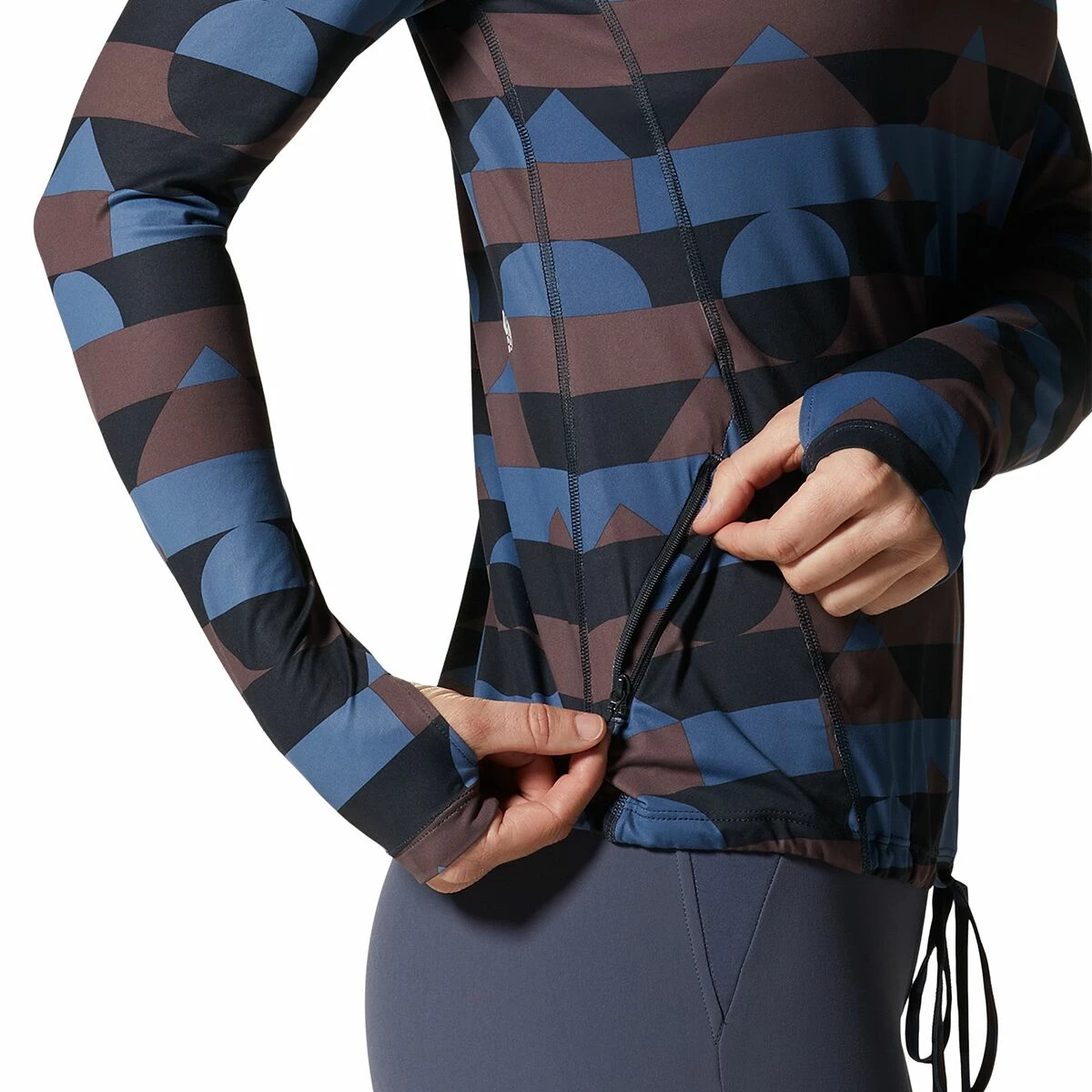 - Thumbhole cuffs secure the sleeves for coverage