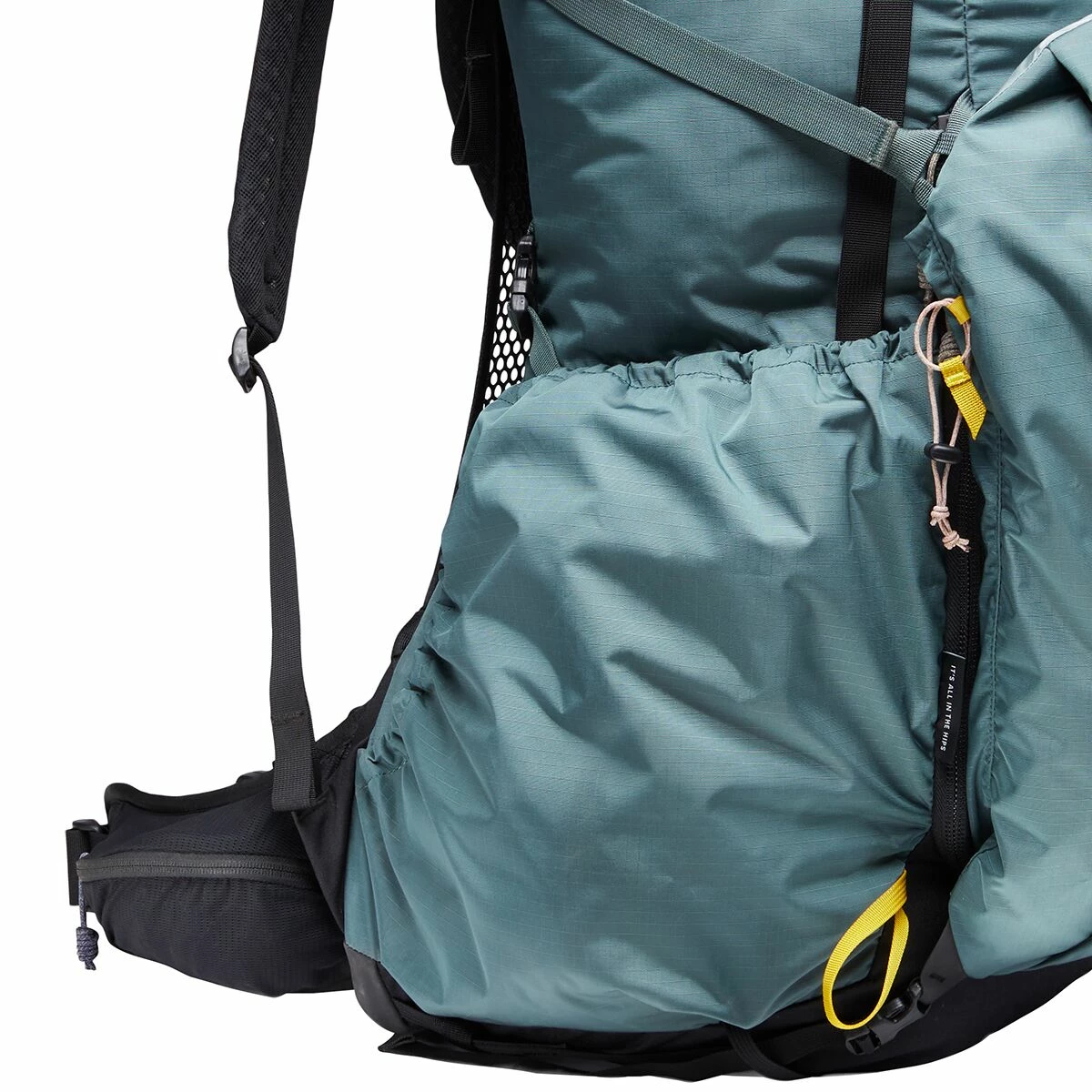 - Trekking pole / ice axe carry loops and daisy chain for organization