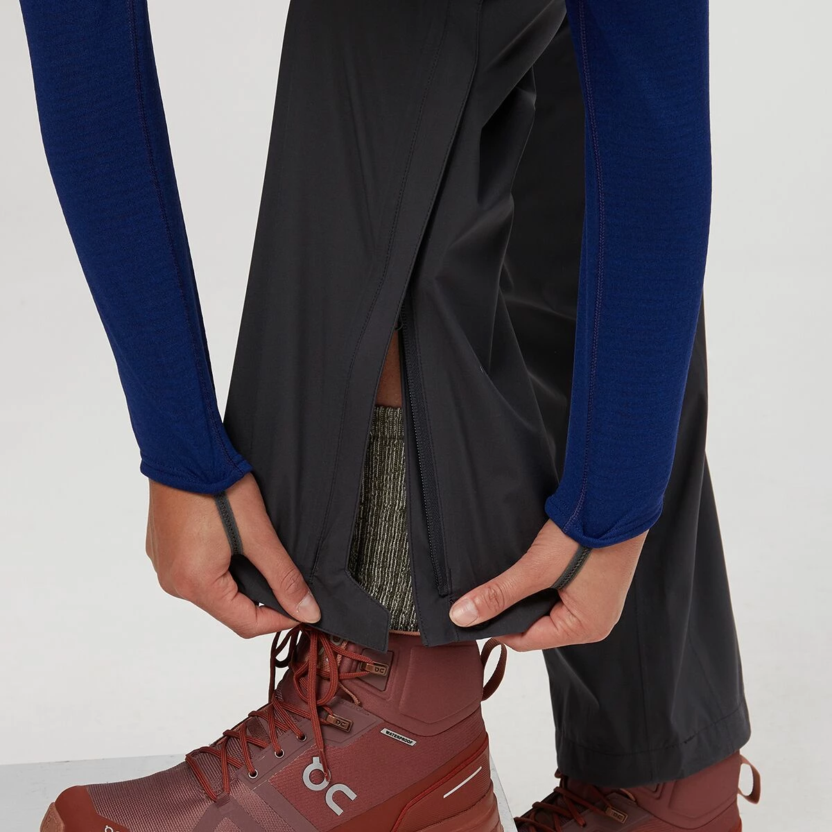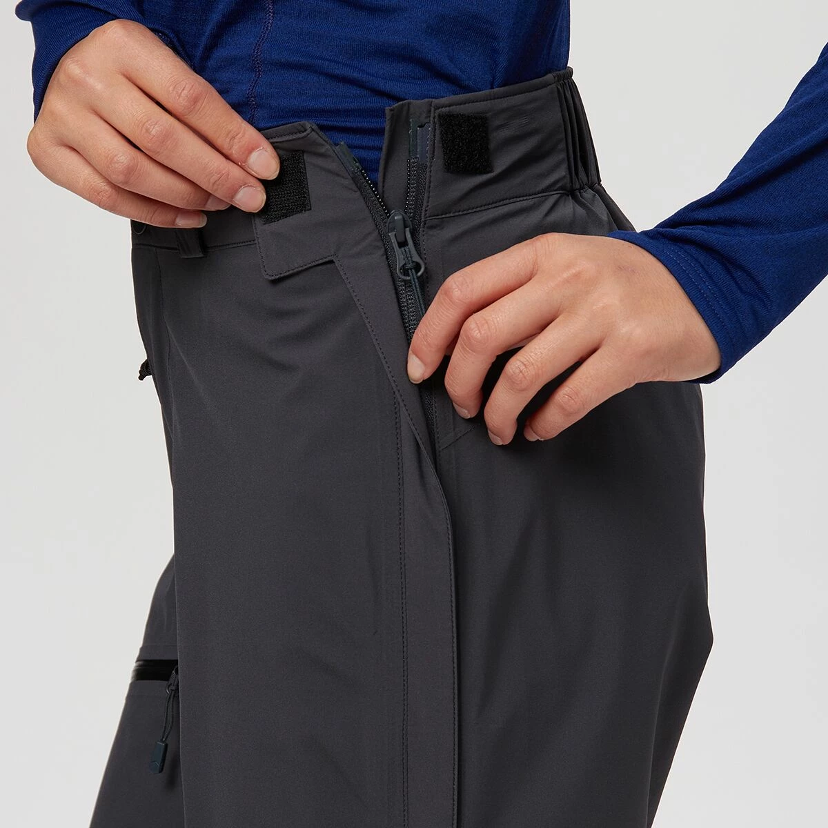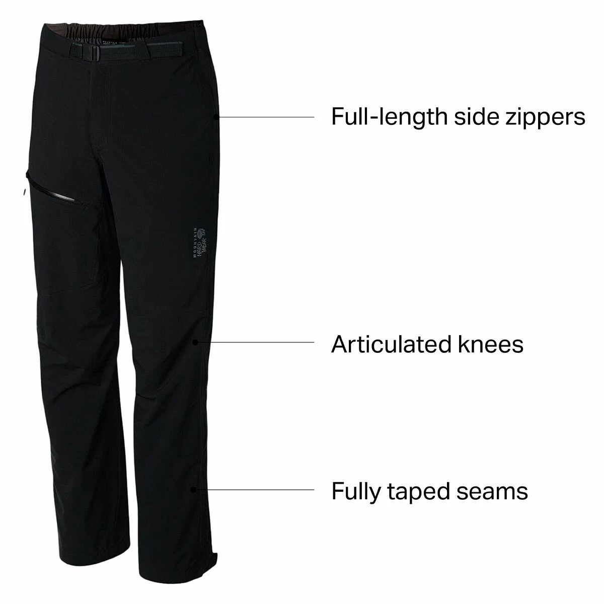 Mountain Hardwear designed the Stretch Ozonic with articulated knees to enhance the pant’s range of motion on steep ascents. Full-length side zippers offer easy on-and-off when you’re out and about, and loops at each cuff accommodate boot laces for extra security. This pant also has a zippered thigh pocket to protect valuables and electronics.